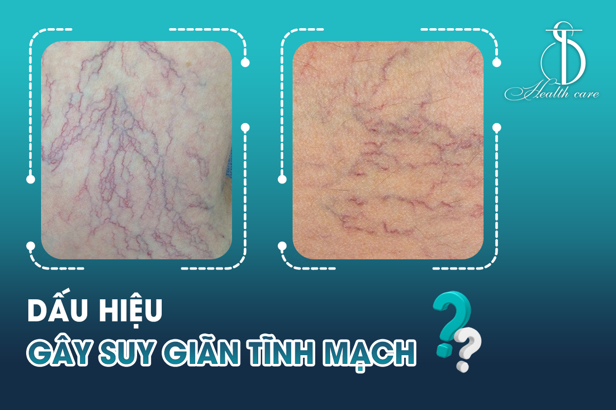 - Biến đổi ngoại hình: Xuất hiện các mạch máu nhỏ hình mạng nhện hoặc các tĩnh mạch màu xanh tím nổi ngoằn ngoèo trên bắp chân, đùi.